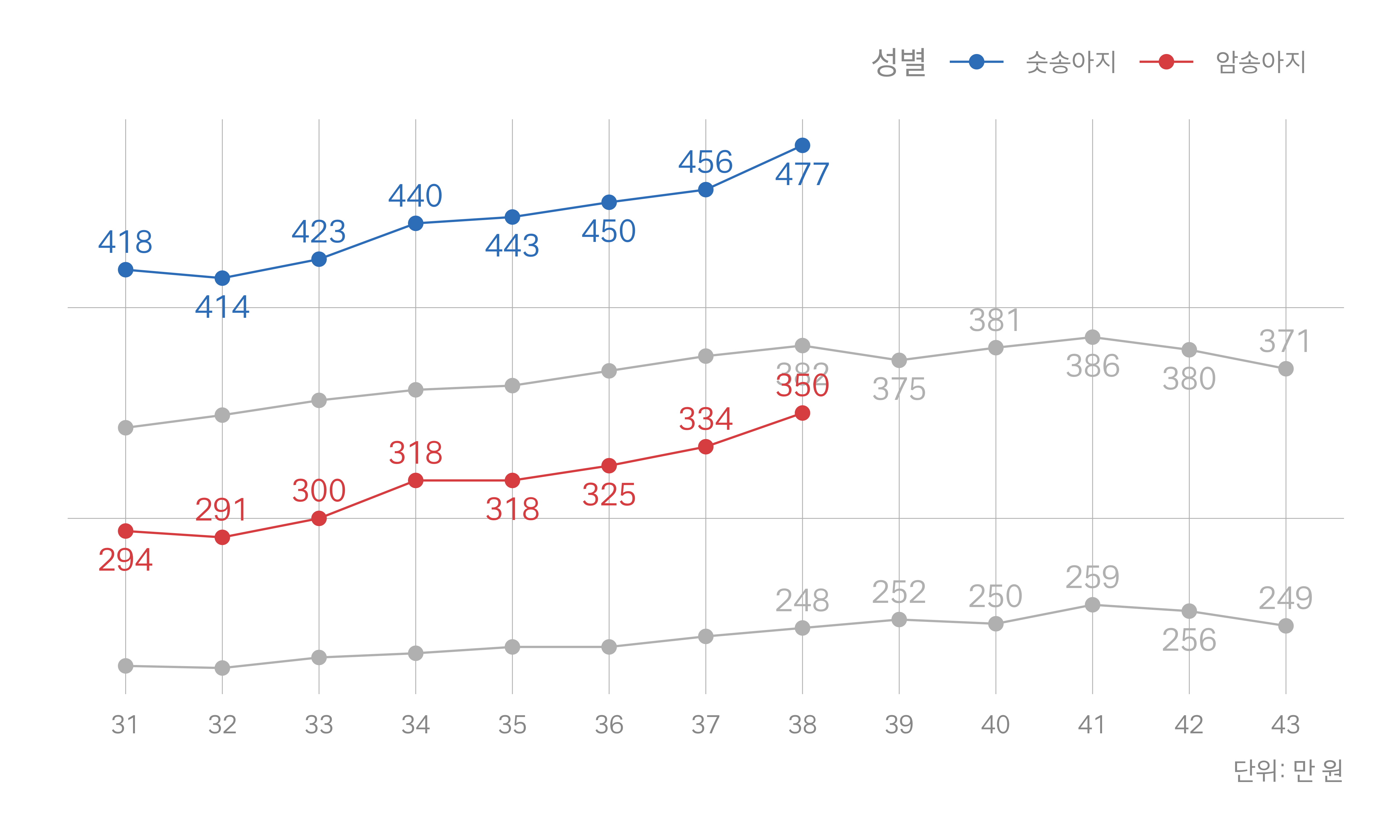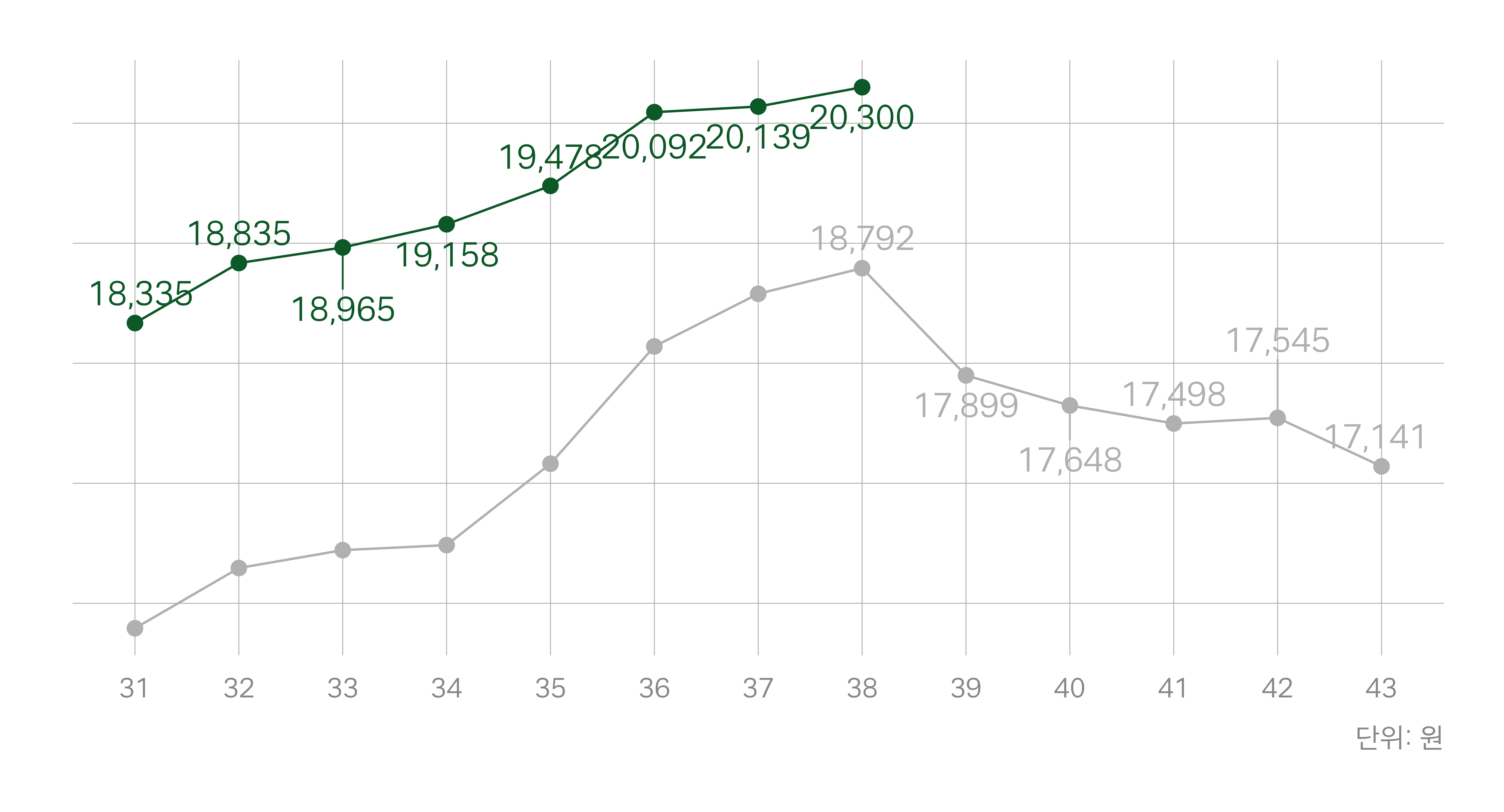 회색 선: 지난해 동일 주차 |