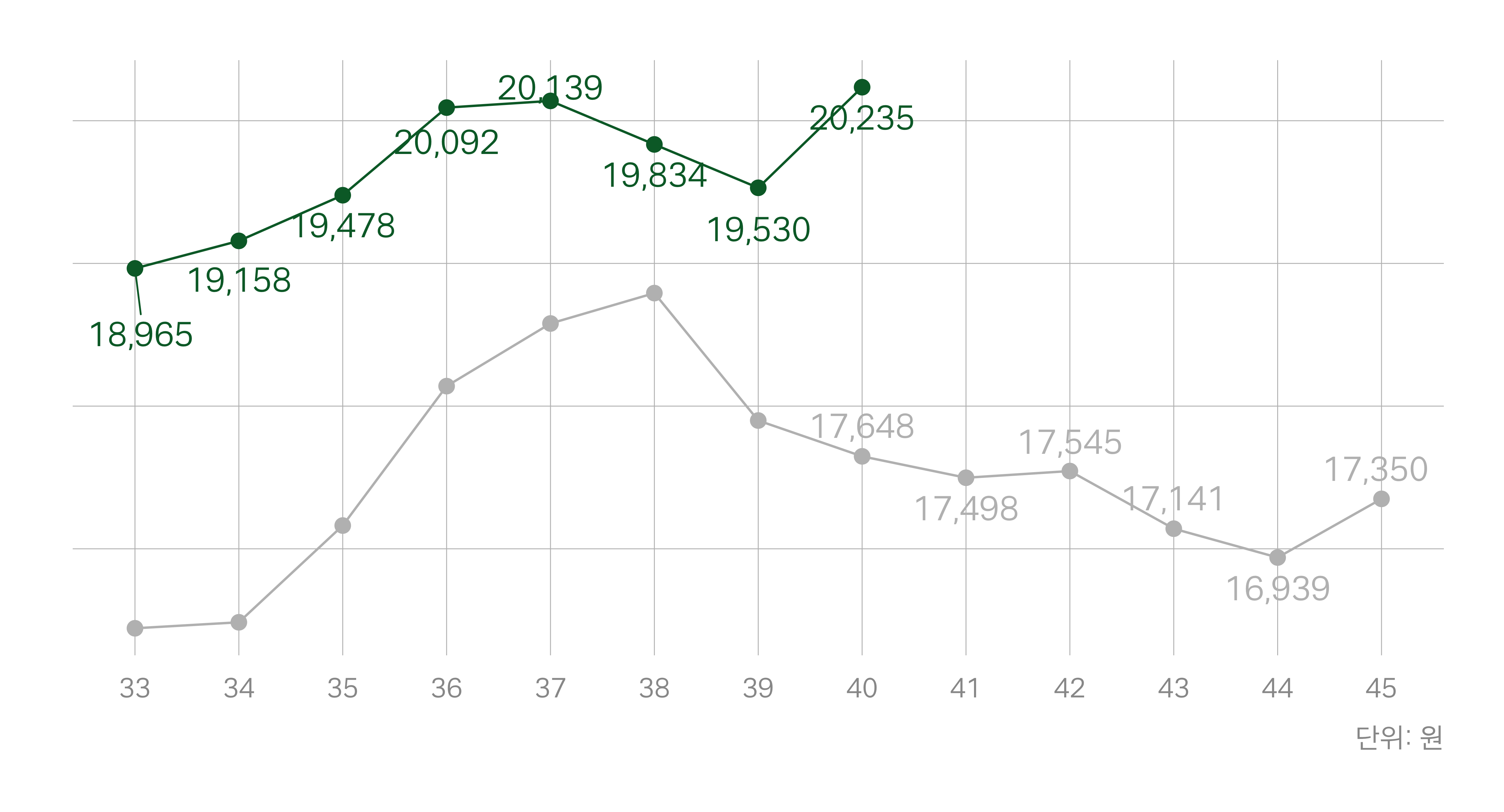 뉴소레터는 매주 목요일에 발행하기 때문에 이번 주 한우 지육 가격은 화~수요일 총 2일로 계산해요. 지난주 평균을 계산할 때는 화~금요일 총 4일의 가격이 포함되기 때문에 같은 주차여도 발행일에 따라 가격이 다를 수 있어요. (월요일 가격은 평균 산정에서 제외)