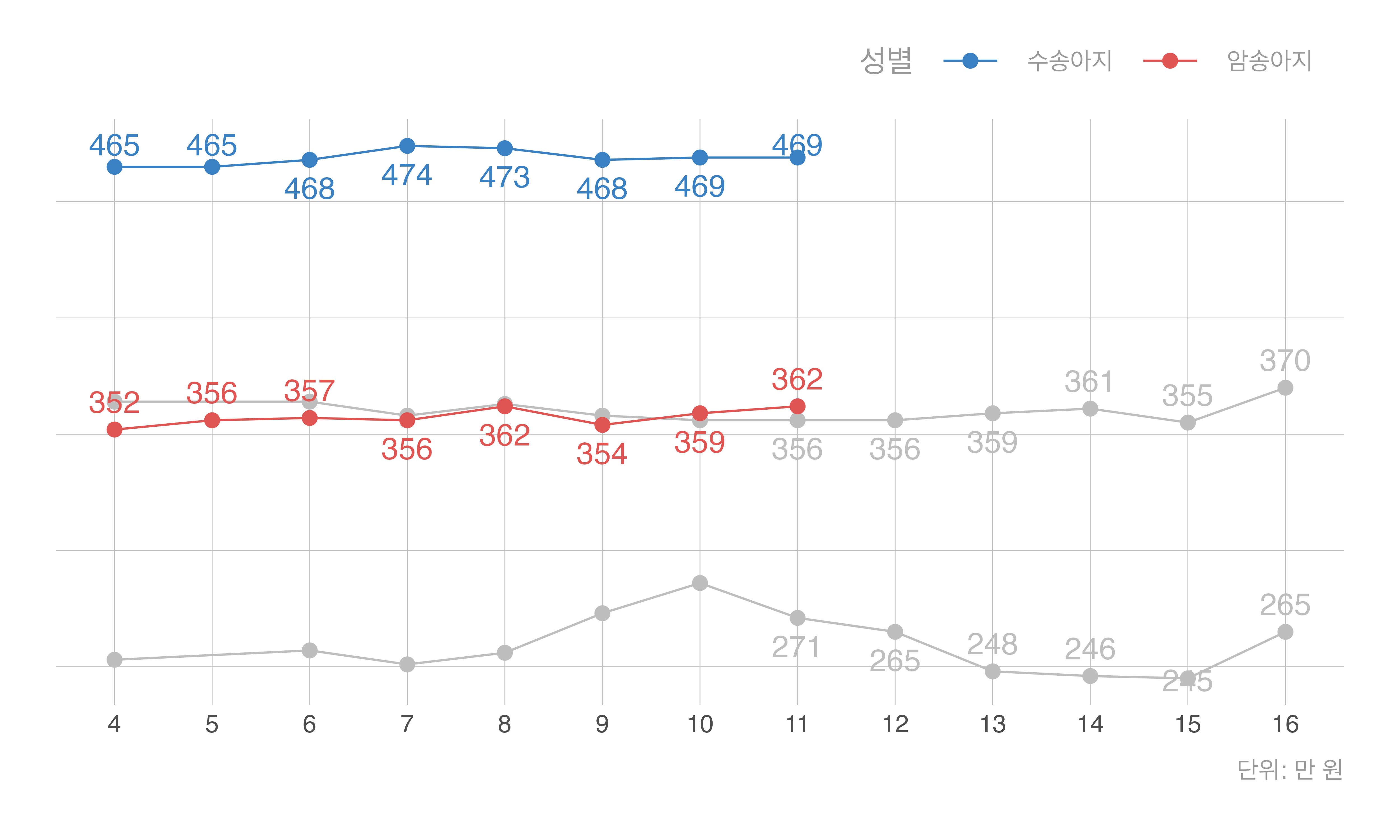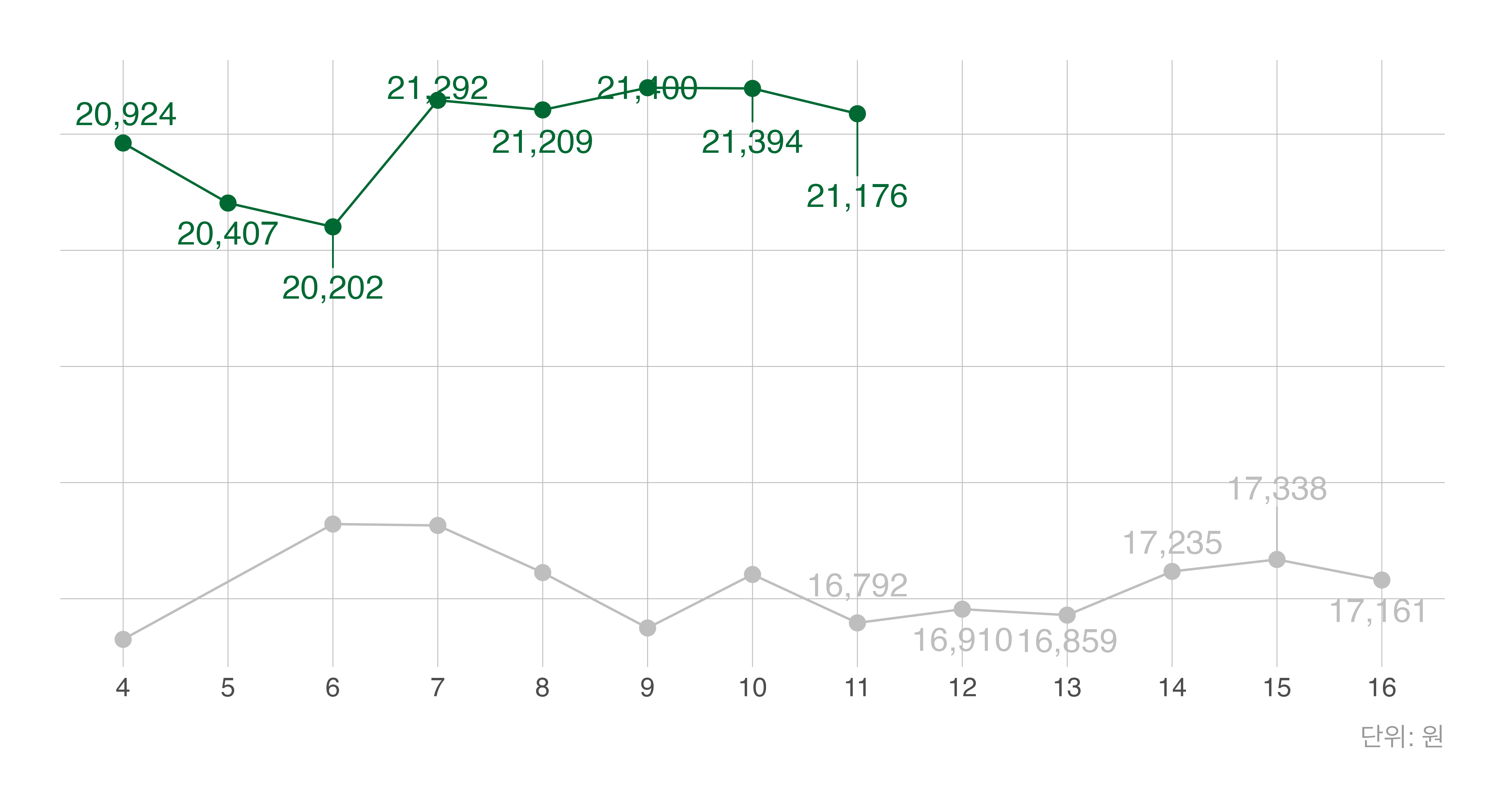 회색 선: 지난해 동일 주차 |