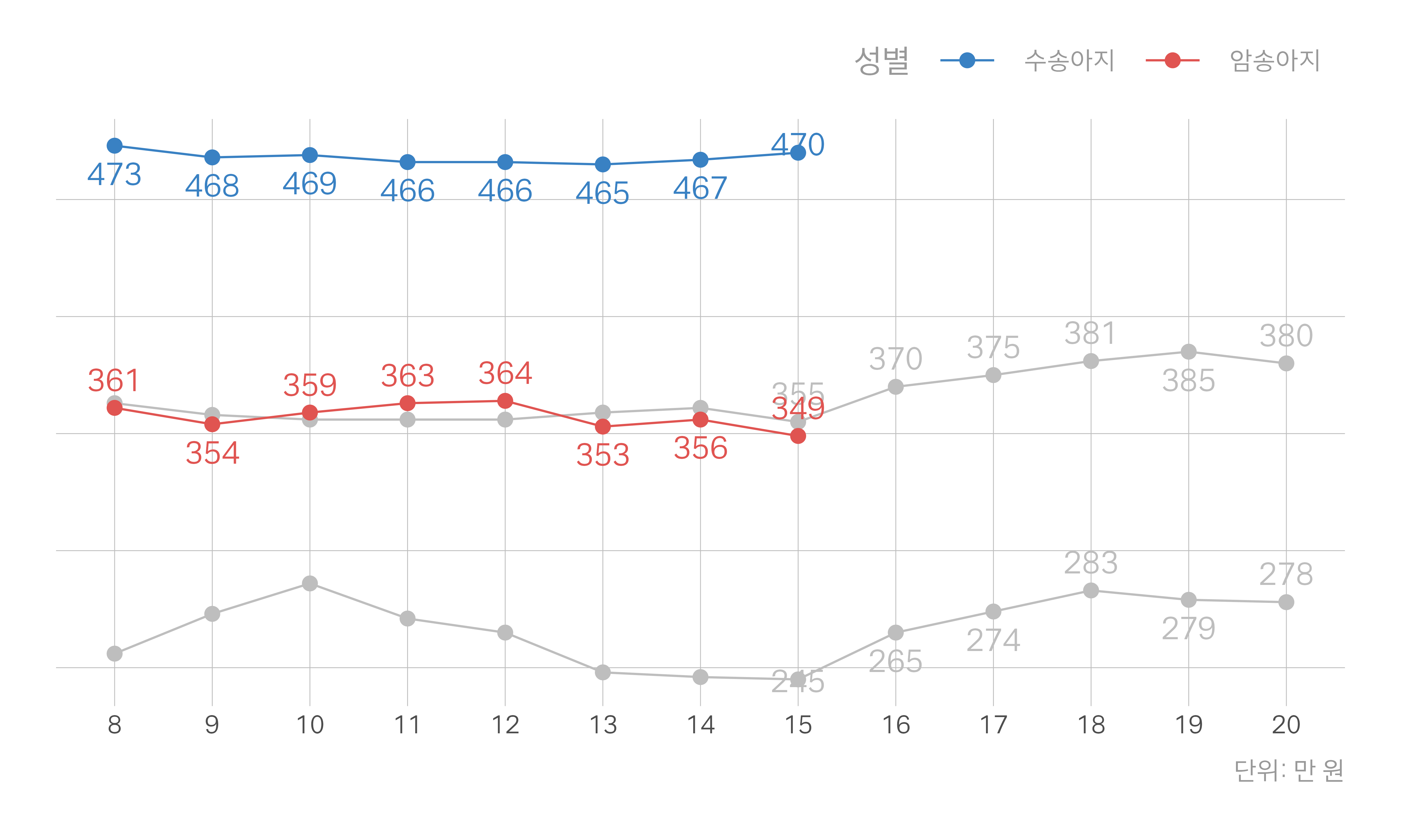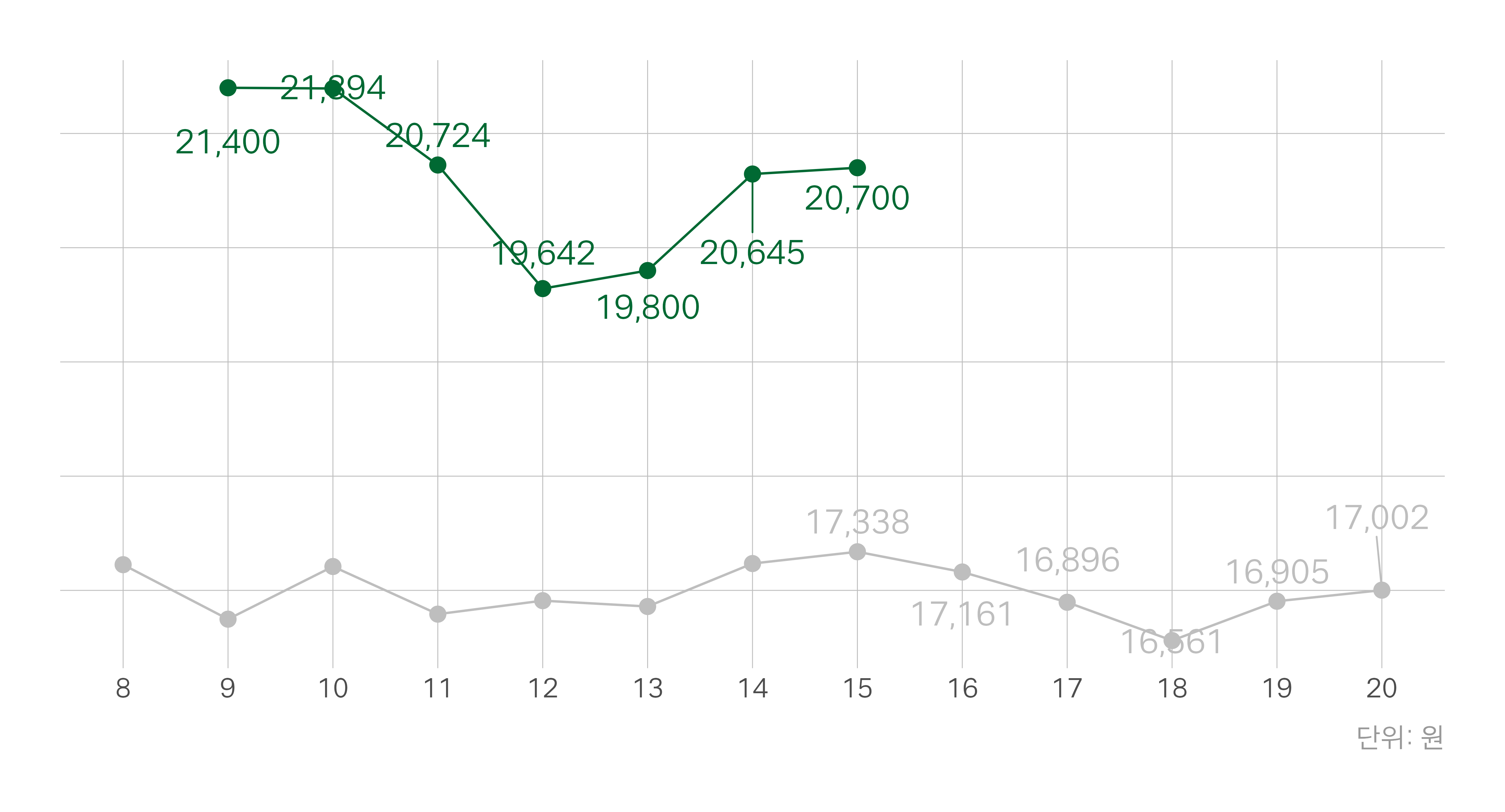 회색 선: 지난해 동일 주차 |